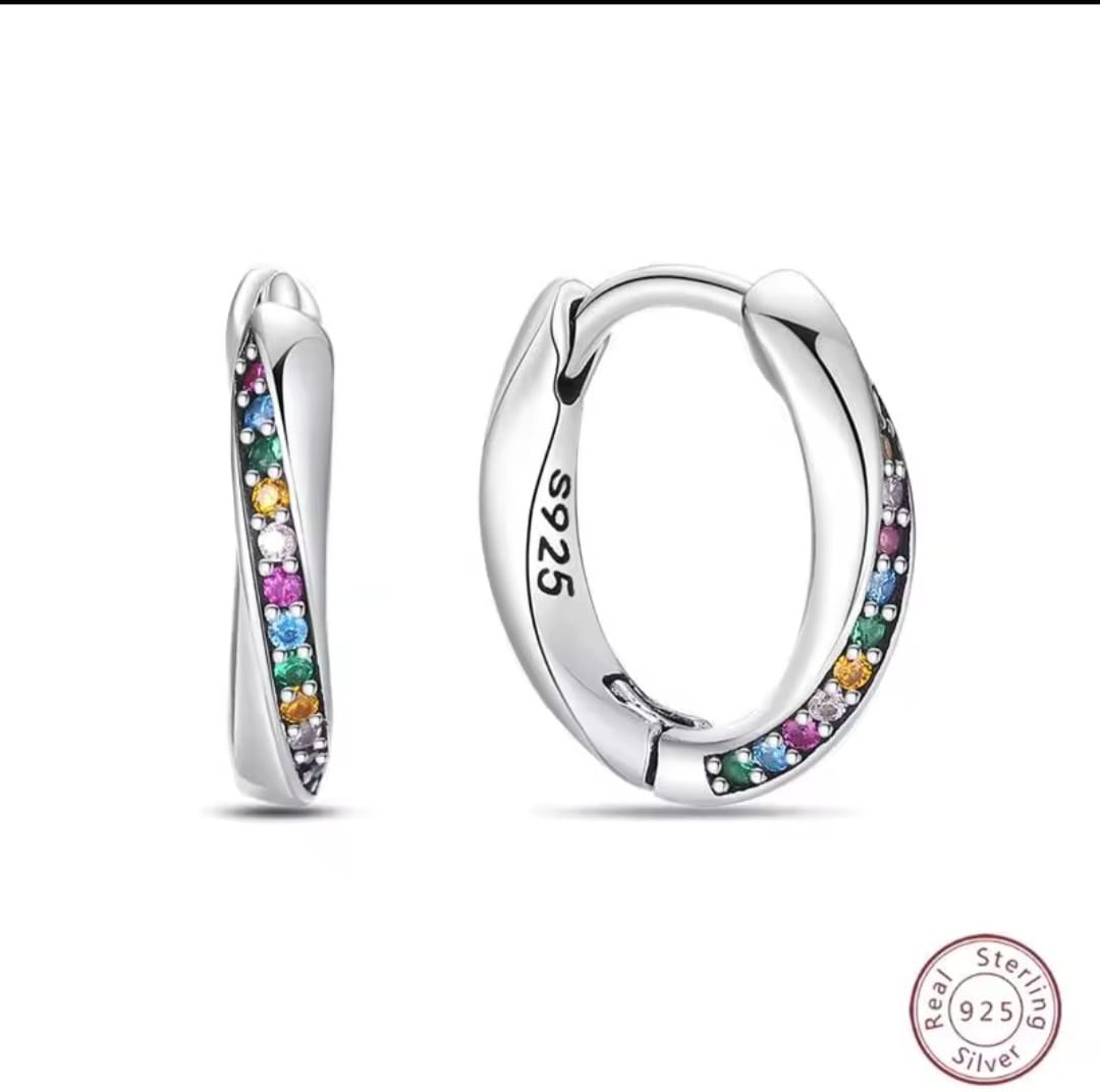 La parte frontale è impreziosita da una fila di piccole pietre multicolori incastonate con precisione, che creano un effetto luminoso e raffinato. Le diverse tonalità — blu, verde, rosa, giallo e bianco — donano vivacità e un tocco di originalità al gioiello, mantenendo comunque uno stile sobrio e versatile.